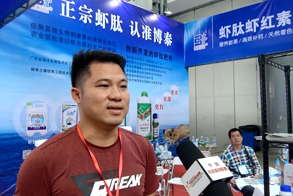 展會上,來自海南的李先生告訴記者,“我是從海南趕過來參加會展的,在會展上我看到了廣東博泰的“蝦肽”系列產(chǎn)品,我了解以后感覺挺不錯(cuò)的,特別是“邦笑膨紅”這款產(chǎn)品對我們種植的芒果、龍眼、荔枝上色、膨大的效果應(yīng)該非常好,還有我們種的哈密瓜、辣椒、茄子等,用上這個(gè)產(chǎn)品應(yīng)該也不錯(cuò)。所以呢,我準(zhǔn)備回海南之后,把這個(gè)產(chǎn)品好好推廣一下,做海南的總代理?!辈稍L結(jié)束,李先生又補(bǔ)充一句,“這個(gè)產(chǎn)品聽用過的人說確實(shí)有效,我們非常有信心!”。