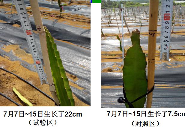 試驗方法:在同一試驗基地分別對火龍果施加常規(guī)肥料和蝦肽肥料,施加蝦肽肥料為試驗區(qū),常規(guī)肥料為對照區(qū),記錄它們的生長情況。