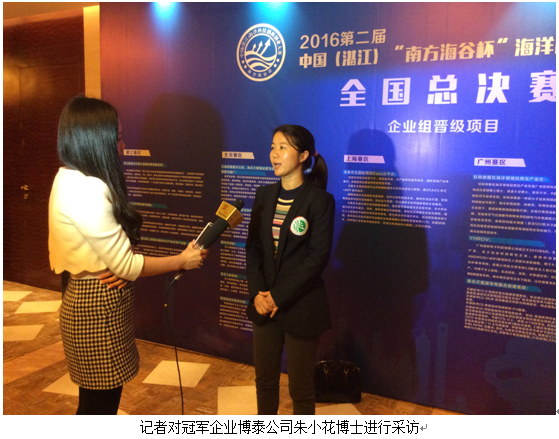 熱烈祝賀博泰公司榮獲2016第二屆中國(湛江)“南方海谷杯”海洋科技創(chuàng)新創(chuàng)業(yè)大賽冠軍
