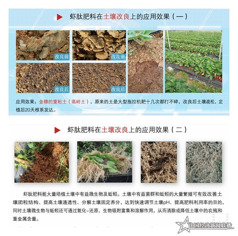 詹少波大體介紹了公司的情況之后,指著貨架上一款名為“蝦肽海螺甲殼素”的產(chǎn)品,對記者說,這就是公司現(xiàn)在生產(chǎn)的新一代產(chǎn)品土壤調(diào)理劑,是公司“健康土壤培育工程技術(shù)研究院”的最新研究成果,利用新一代的萃取技術(shù)從牡蠣殼、海螺殼中提取含海洋甲殼素、鈣、鎂、硼、鋅、鐵等養(yǎng)分,并添加蝦肽氨基酸進行絡(luò)合,生產(chǎn)出高活性的土壤調(diào)理劑產(chǎn)品。它的原理就是通過給土壤補充活性有機螯合物,如螯合鈣,螯合鐵,螯合鎂等。該土壤調(diào)理劑能快速調(diào)整土壤ph值和土壤團粒結(jié)構(gòu),增大了土壤環(huán)境的通透性能,為各種有益微生物生長繁殖提供了條件。通過監(jiān)測,土壤有益微生物量大幅提升,同時也促進蚯蚓的大量繁殖生長,以此來清潔土壤,平衡土壤微生態(tài),恢復(fù)土壤活力,從根源上解決我國土壤問題,利用率高,快速高效。