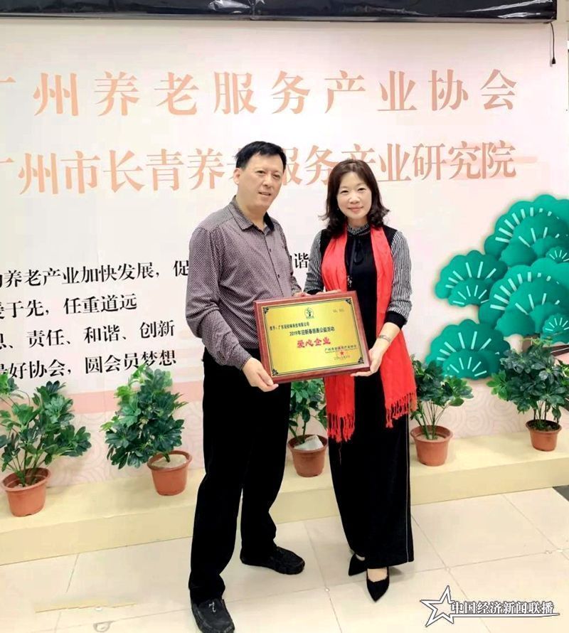 (慰問的該養(yǎng)老公寓負(fù)責(zé)人劉寧與廣東冠初味科技有限公司副總經(jīng)理潘愛華合影留念)